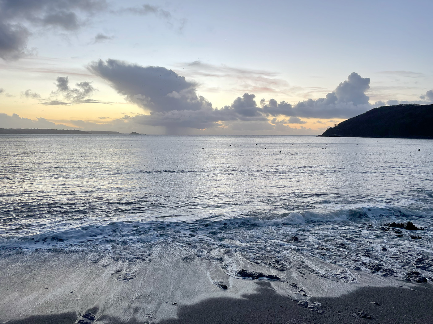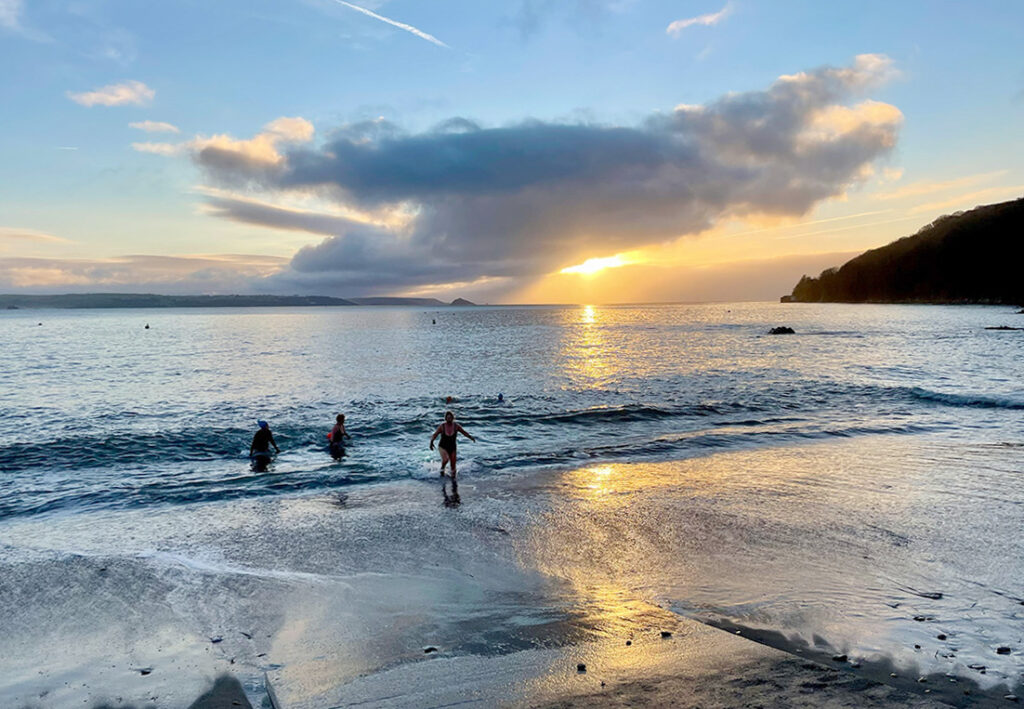 This is a really popular swim spot. When Whitsand bay is crashing with surf after strong south-westerlies, Cawsand’s sheltered bay will be as calm as a millpond. Parking is easy, with a car park just a short walk away. The beach is dog friendly, there is a shelter to change in, with toilets next door. Benches on a concrete plinth at the back of the beach offers a good viewing spot for non-swimmers. For experienced swimmers, there are swim bouys to aim for, and rock-pools to swim through, while beginners can do lengths of the bay (my prefered option in winter.