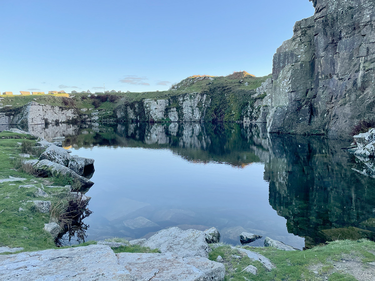 Goldiggins Quarry is about a mile’s walk from Minions. Set in the depths of the moor, it really is a very atmospheric place. There are two quarries; the outer one is large and very deep. It is popular in summer. The inner is rockier and shallow, making it a good option if you just want to immerse for a few moments, rather than properly swim.