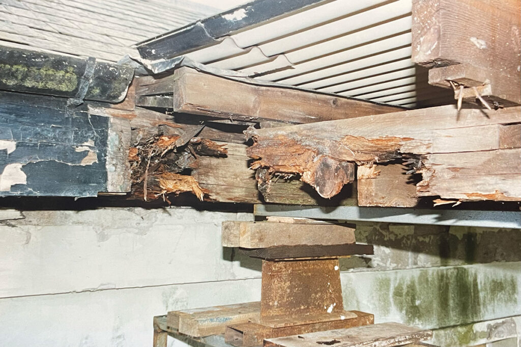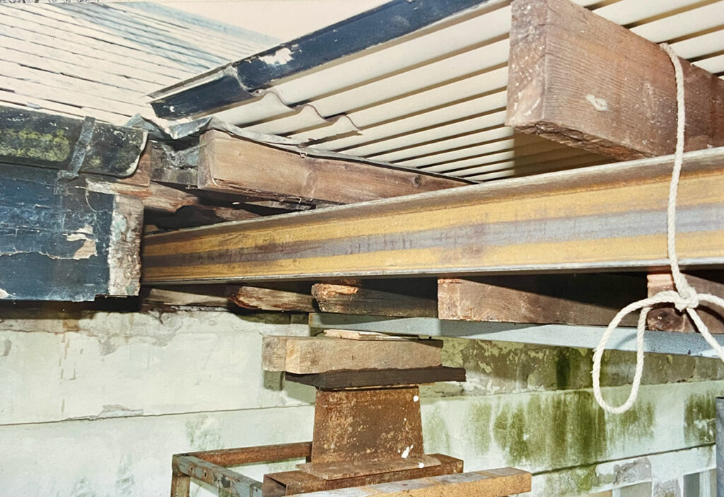 Because the big joist that was holding up the carpark side canopy was completely rotten and the canopy at that point in imminent danger of collapse, this was a priority job. It was a credit to Victorian over-engineering that the canopy was still in place. The ceiling joists are massive throughout the building; far bigger than might be considered necessary, but lucky for us on many occasions.