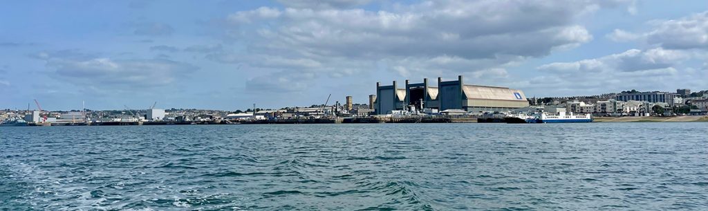 The Cornish side of the river is rural and verdant. In stark contrast, the east bank (the Devon side) is industrial and dominated by Devonport Dockyard. The historic dockyard buildings somehow survived the worst of the WW2 Plymouth bombings, and are equally fascinating to look at. There are areas where submarines are worked on, and frequently you’ll see a frigate or large ship in the dock or around the bay. For more information you may like to see the Devonport Dockyard Wikipedia Page.