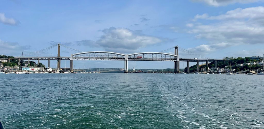 After heading under the Tamar and Royal Albert bridges, the cruise continues onwards down the Tamar. On the west bank (the Cornwall side) as you leave Saltash you will see Coombe Viaduct before the river widens at the mouth of the Lynher, which heads towards St Germans. You are now entering an area known as the Hamoaze.