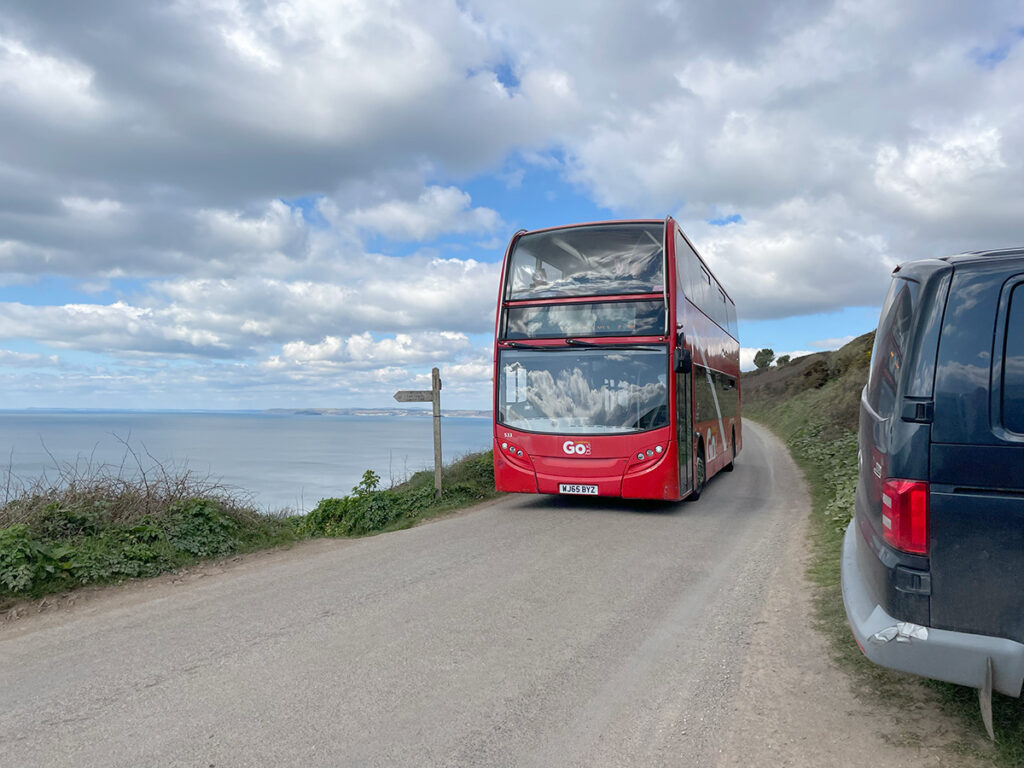 One of the most scenic bus rides in South East Cornwall is the double-decker that goes from Cremyll along Whitsand Bay
